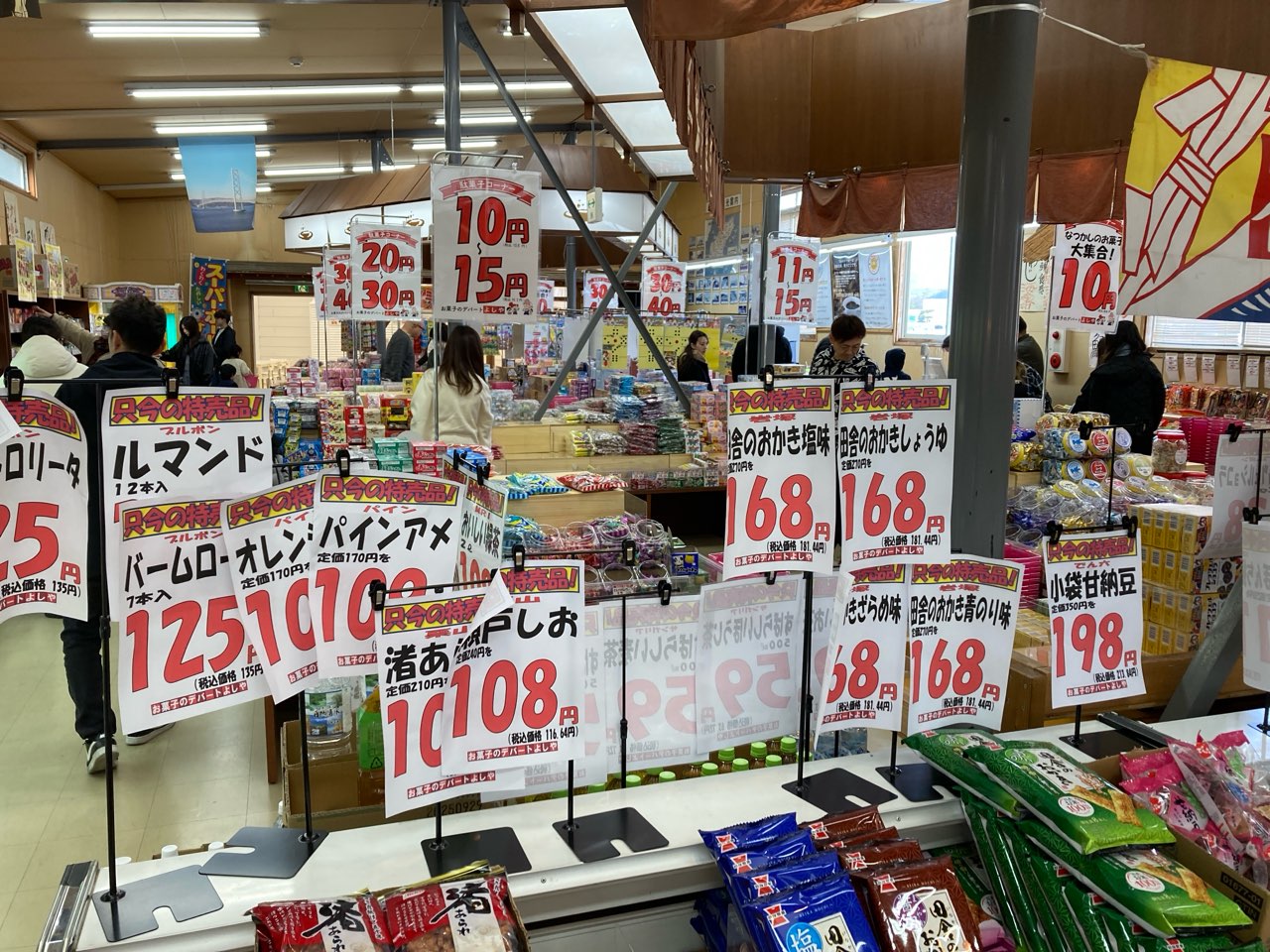 土産物屋さんから、急にPOPが賑やかなお菓子売り場となり・・・