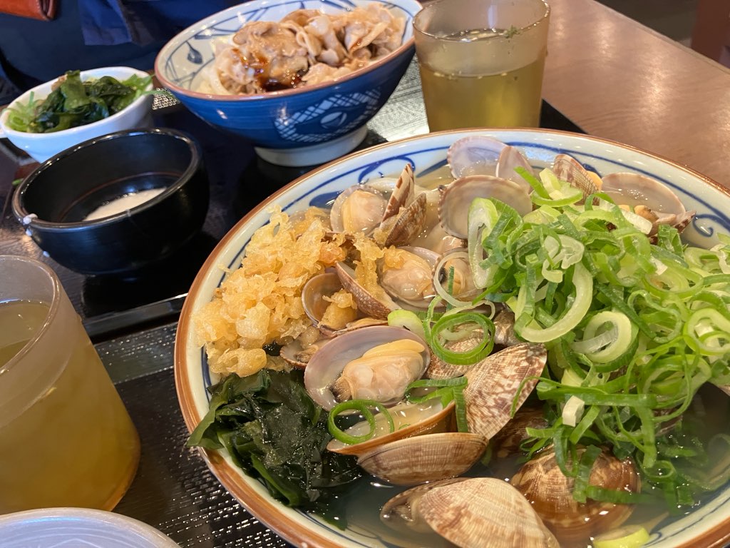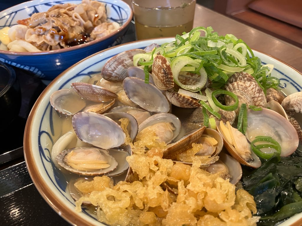 花見をした後は、毎年この時期に楽しみにしている丸亀製麺の「あさりうどん」が 4月中旬までと知り急遽、夕食は丸亀製麺へ・・・