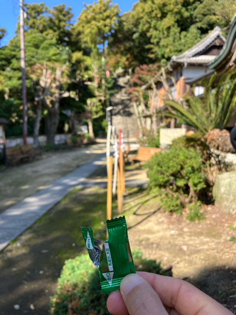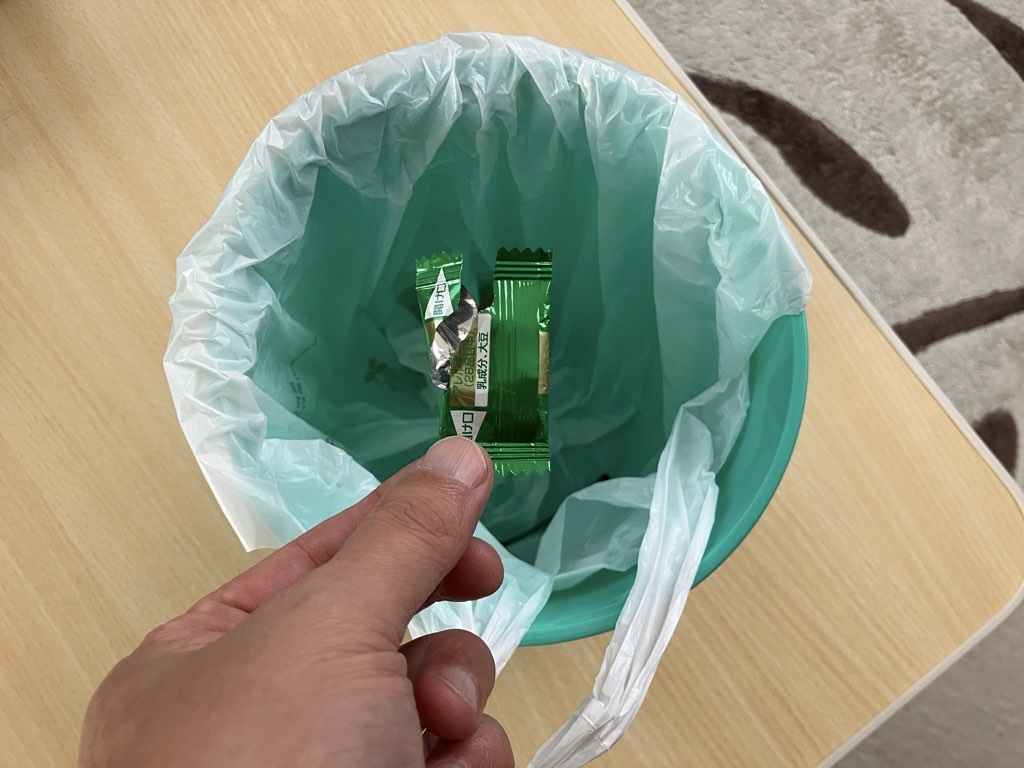 で、帰るときに飴の個装袋が捨ててあったので拾い・・・